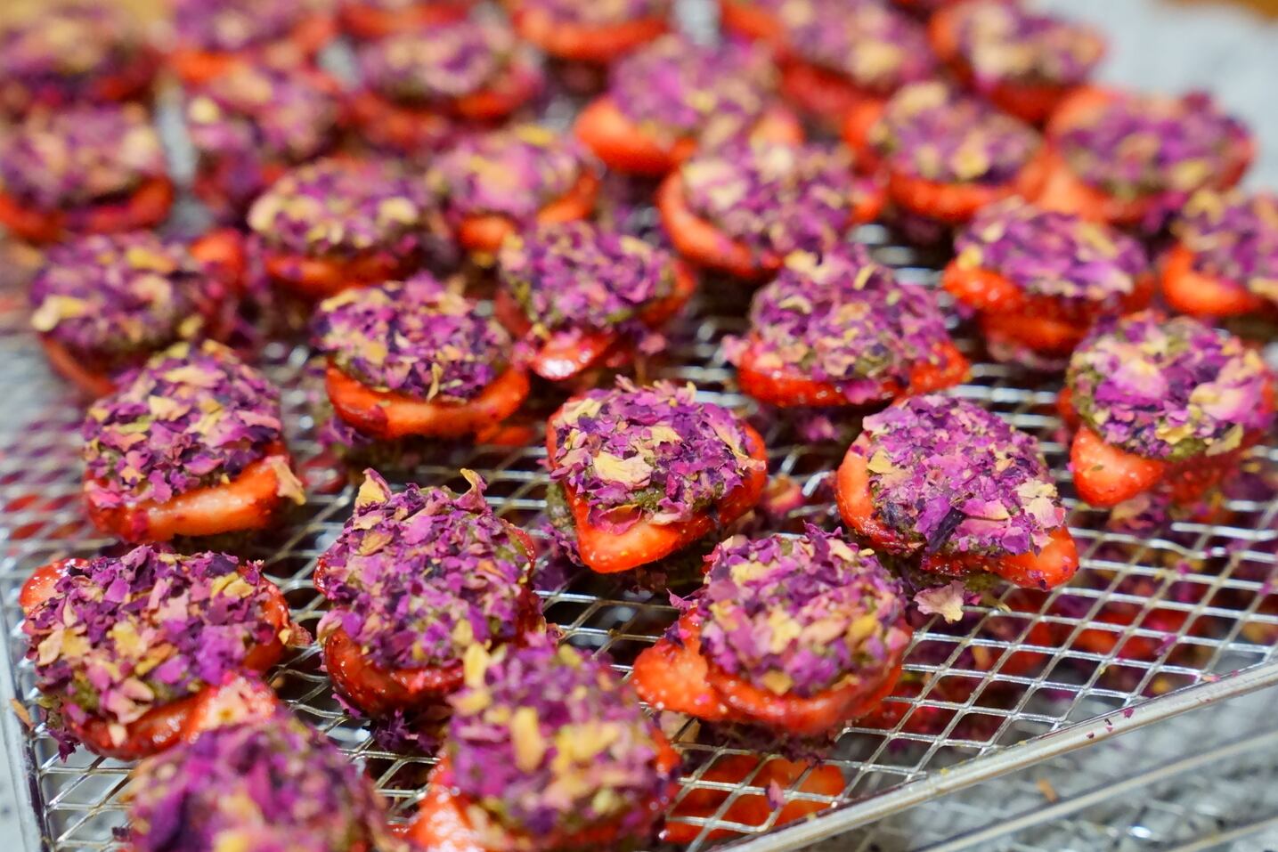 高品質ローズペタルをパン粉のようにまぶして